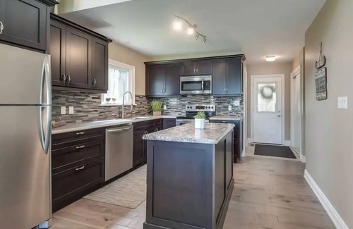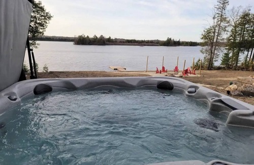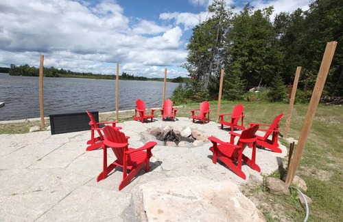 Elegant lakefront cottage with luxurious furnishings and a private sandy shore exclusively for our guests. Ideal for young swimmers, shallow lake offers a serene environment with only 16 properties dotting its perimeter. Relax in comfort Muskoka chairs encircling underground firepit, complete with limestone rock flooring and steps. The abundance of trees and ample space between neighboring properties creates a secluded atmosphere akin to driving through a forest, with only this cottage in sight.