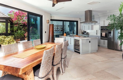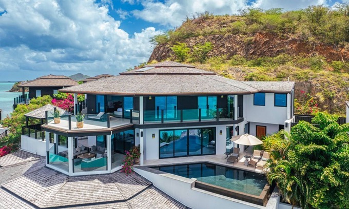 Nestled on a lush green headland on Antigua’s sparkling southwest coast, Ocean 5 is a stunning four-bedroom villa with a private pool and panoramic views of the Caribbean Sea. Part of the Tamarind Hills boutique collection of oceanfront villas and suites, Ocean 5 is designed with laidback Caribbean living in mind. With sun-soaked outdoor spaces and dreamlike vistas, you will be ready to return to this enchanting island paradise time and time again!The large wraparound terrace provides guests with a fantastic outdoor living space, complete with an infinity-edged swimming pool and a secluded sunbathing area. You will be drawn out to the terrace every morning by the radiant blue skies overhead and the sound of the gently lapping waves below. After a refreshing dip in the pool, guests have a covered outdoor lounge area where they can relax with a good book for the rest of the afternoon. The terrace also features a casual outdoor dining area and a fully equipped kitchen with a barbecue grill, the perfect place to prepare memorable meals with a cocktail in hand.Inside, the villa continues to exude effortless charm with relaxed, contemporary design touches, echoing the natural colours and textures of the surrounding island. Wide patio doors lead from the terrace into a stylish lounge area, where there is a sumptuous corner sofa and a large flatscreen TV, making this the ideal spot for everyone to unwind after a day spent exploring Antigua’s beaches. The open-plan lounge flows harmoniously into a spacious dining area with more beautiful views. Adjacent to the dining area, the villa’s well-appointed kitchen features a large island and modern appliances, including a coffee machine for your morning coffee on the terrace. A charming double bedroom is also located on the ground floor, complete with an en-suite bathroom featuring a walk-in rain shower.Three more fabulous double bedrooms with king-size beds and smart TVs are available on the first floor of Ocean 5. The master suite features a spacious oceanfront balcony with spectacular views, where guests can enjoy a leisurely breakfast or take in a romantic sunset. This suite features an en-suite bathroom with a rain shower and a luxurious bathtub, while every other bedroom includes an en-suite bathroom with a walk-in shower. Air-conditioning is featured throughout the villa, with ceiling fans fitted in each of the bedrooms as well as the main living space. This island oasis is ideally situated between two of Antigua’s dazzling beaches: Darkwood Beach and Ffryes Beach. On Ffryes Beach, the resort’s private sun loungers are laid out on the sand. Guests have exclusive access to Tamarind Hills Beach Club a few steps away, boasting its own bar, restaurant and salt-water swimming pool. For a choice of excellent restaurants, the marina at Jolly Harbour is only a five-minute drive away.