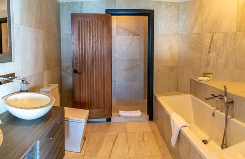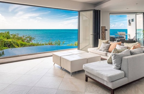 Ocean Blessed is a spacious, well-appointed two-bedroom villa on the island of Antigua, situated within the Tamarind Hills Resort’s boutique collection of villas and suites. The villa offers contemporary charm and comfort for up to four guests, with magnificent views of the sparkling Caribbean Sea and a private infinity-edged swimming pool. The villa’s understated décor reflects the laidback character of the island, with nods to the natural colours and textures of Antigua. A dip in the gorgeous pool is the ideal way to begin your holiday, before stretching out on one of the comfortable sun loungers available on the terrace. The outside space also features a covered barbecue grill and a casual dining area, the perfect place to enjoy a cocktail at sunset with panoramic vistas of the ocean around you.The ground floor’s sun-soaked terrace flows harmoniously into a bright and airy open-plan living space, where a comfortable seating area with a corner sofa and a flatscreen TV creates the ideal spot for everyone to unwind after a day spent exploring the wonders of the island. In this space, you will also find the villa’s well-equipped kitchen, with everything you need to cook up a memorable meal at home. The spacious kitchen includes a fitted breakfast bar, where you can relax with your morning cup of coffee, gazing out at the blue skies ahead.Upstairs, two stylish bedrooms provide more stunning views of the ocean, instilling a sense of peace and tranquility at the start of each new day. The master bedroom features a king-size bed and boasts access to a private balcony with a lovely seating area, where you can lounge with a book whilst listening to the soothing sound of the waves lapping gently below. This bedroom also leads to an en-suite bathroom with a bath and a walk-in shower. The villa’s second bedroom, a charming twin room, also features access to its own balcony with panoramic views and an en-suite bathroom with a shower. The villa is air-conditioned throughout, with ceiling fans in place in both bedrooms, ensuring that your nights are cool and restful.The relaxed and welcoming appeal of the villa’s interior space, along with dazzling views of Darkwood Beach and the turquoise ocean, makes this Antiguan gem a truly serene holiday setting that guests will wish to experience time and time again.