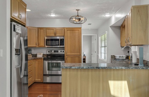 2. (Family-Ready Kitchen): Fully equipped with modern appliances, cookware, dishes, and everything you need to whip up meals or enjoy takeout from nearby restaurants.