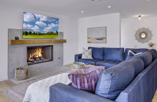 This vacation home opens up to a spacious living room with a family kitchen. There is plenty of room in the living room to lounge in front of a 70-inch Samsung Smart television and natural gas fireplace in comfort. The casual dining area features a dining table with seating for eight. The fully-equipped kitchen features stunning stainless steel appliances such as a KitchenAid side-by-side refrigerator with a water and ice dispenser and offers everything one would need to create their perfect meal, including granite countertops and bar height dining with seating for six. Enjoy the lounge area with seating for four and a view. Grab your favorite wine and a good book to enjoy this extra space. No spices, condiments, or oils are provided.