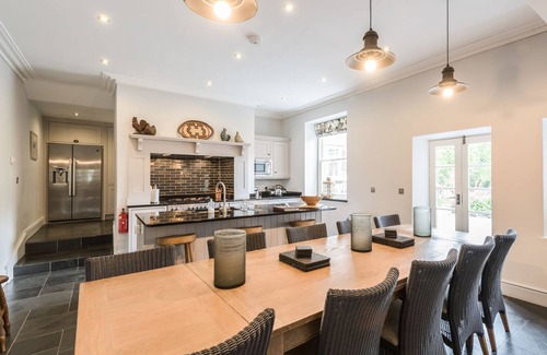 Oil central heating with open fire. Rangemaster range cooker with electric oven and 5-ring induction hob, microwave, fridge/freezer with ice-maker, washing machine, tumble dryer, dishwashers, TVs with Freeview, Blu-ray DVD, CD/radio, iPod dock, WiFi, selection of books, games and DVDs.
