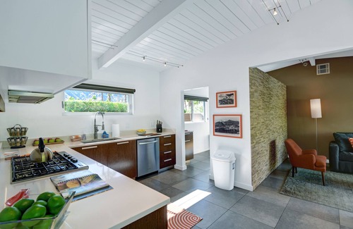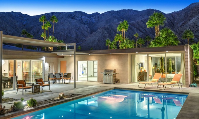 Constructed in 1960 by the renowned Alexander Construction Company, The Tangerine Twist features an open floor plan with wonderful indoor-outdoor flow, exceptional light exposures, ultra-modern furnishings and exquisite art all around. The home has undergone extensive updates, creating the ultimate luxury destination for 'Desert Living'. The home includes 5 bedrooms and 4 bathrooms (3 are en- suite), fully stocked gourmet kitchen with professional appliances, a separate Media Room, a dining area with sitting for 6-8, comfortable outdoor sitting and lounging, pool lounge chairs, a pristine pool, pool floats and toys, outdoor SPA, firepit, and manicured grounds