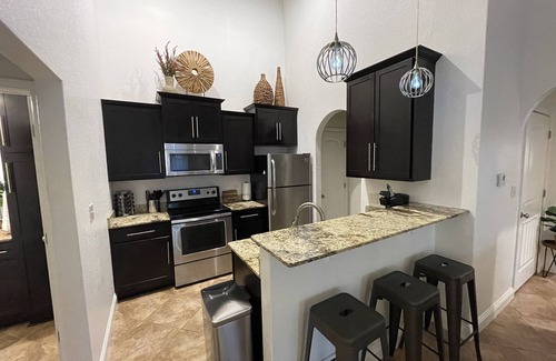 Kick back and relax in this newly decorated calm, stylish space! We are located just on the out-skirts of town, in a quiet lakeside community, perfect for a nice evening walk or jog. We are less than 20 minutes from Oaklawn, and are about 15 minutes from Garvan Woodland Gardens. Owned and operated by DMT Properties LLC, this adorable two-bedroom condo is perfect for your weekend getaway to the Spa City.