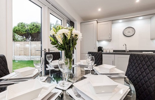 A modern three-bed property with lots of space, high-speed Wi-Fi, driveway, dining table to work on your laptop if required.