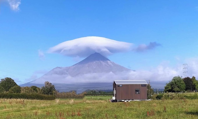 A cozy 18-square-metre tiny home set in an idyllic and peaceful location, with bonus views of Mt Tongariro, Mt Ngāuruhoe (Mt Doom from The Lord of the Rings), and Mt Ruapehu—three of the four iconic mountains of the North Island—rising on the eastern horizon. In the evening, relax by the outdoor fire brazier and enjoy breathtaking views of the Milky Way Galaxy.