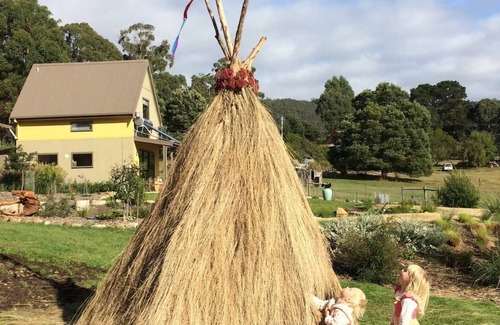 There are two houses on the large property, ‘Getndare Cabin’ and ‘Getndare Mud-brick Cottage’ which are both on short stay accommodation. Plantings provide privacy but the trampoline, teepee and sandpit are shared between the two dwellings. There is also a pond so children need to be supervised. The cabin has Wi-Fi and tv with chrome cast. We would consider pets and longer stays at special rates.
