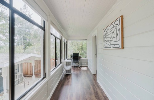 This furnished home in Los Gatos is situated in a medium-sized, affluent town. It sits at the base of the Santa Cruz Mountains, so reaching the beaches in Santa Cruz, is a short 25-minute drive away. The delightful downtown has lots of great coffee shops, breakfast joints and boutique shops. Two outdoor highlights of this city are the Los Gatos Creek Trail and the Vasona Lake County Park. The trail is 9.5 miles long and many cyclists, runners and skaters make use of the trail each day. Vasona Park offers paddle boats, picnic areas and lots of lawn space for relaxing.