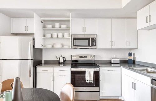 As with any Blueground apartment, you’ll find a thoughtfully designed space complete with beautiful furniture and a fully-equipped kitchen in this two bedroom property. And, thanks to our superior quality mattresses, luxury linens, and towels, you can relax knowing you’ll always feel comfortably at home. When you’re ready for some fun, you can take in the Inglewood vibes or bring the entertainment to you with the premium wireless speaker or smart TV. This apartment also offers in-apartment laundry.