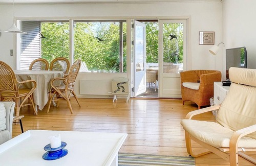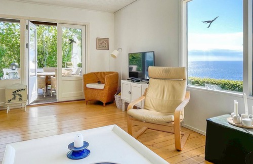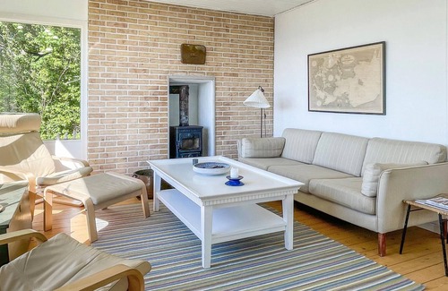Welcome to this charming vacation home, where you will immediately feel at home due to the beautiful interior and the wonderful sea view. The heart of home life is the spacious living room with dining area, where you can make yourself comfortable, watch movies and have cozy conversations, play games and listen to the radio or music ? all while enjoying the sea view through the large window front. On cold days, the fireplace stove dissipates heat and creates a cozy atmosphere (firewood is included). The house has an older, but therefore charming, and well-equipped kitchen where you can prepare your favorite meals.