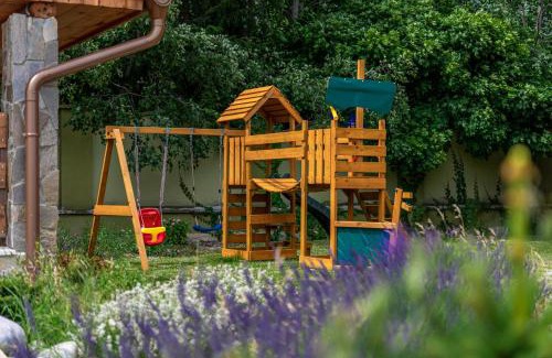 12 miles from Strbske Pleso in Starý Smokovec, Tatranský Zrub features accommodations with access to a steam room and open-air bath. This property offers access to a balcony, free private parking, and free Wifi. The chalet has an outdoor fireplace and a sauna. Providing a terrace and mountain views, the spacious chalet includes 7 bedrooms, a living room, flat-screen TV, an equipped kitchen, and 3 bathrooms with a shower. Towels and bed linen are provided in the chalet. There's also a seating area and a fireplace. Guests can make the most of the warm weather with the property's barbecue facilities. For guests with children, the chalet provides an indoor play area and outdoor play equipment. Skiing and cycling can be enjoyed nearby, while a ski equipment rental service and a ski pass sales point are also available on-site. Treetop Walk is 15 miles from Tatranský Zrub, while Dobsinska Ice Cave is 25 miles away. Poprad-Tatry Airport is 6.2 miles from the property.