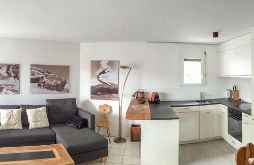 "Tavaun A11", 2-room apartment 40 m2 on 1st floor. Fully renovated in 2015, comfortable and modern furnishings: living/dining room with 1 sofabed, dining table and cable TV (flat screen), radio and DVD. Exit to the balcony. 1 double bedroom. Open kitchen (oven, dishwasher, 4 ceramic glass hob hotplates, toaster, kettle, microwave, electric coffee machine, Capsules for coffee machine (Nespresso) extra, raclette grill). Bath/WC. Balcony, west facing position. Balcony furniture. Side view of the mountains, the countryside and the resort. Facilities: Internet (WiFi, free). Garage space n A11. Please note: non-smokers only.