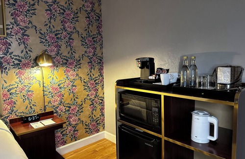 Deluxe Room Non Smoking, The room is equipped with amenities to enhance your experience, including a 40 inch Smart-TV, a minibar stocked with refreshments, a selection of Snaks, coffee maker, Electrick Kettle and a Microwave for your convenience, Complimetary water bottle, coffee and tea bags , Digital alarm clock AM-FM radio, hair dryer, laundry on request, luxury toiletries Shampo Conditioner and Body Wash.