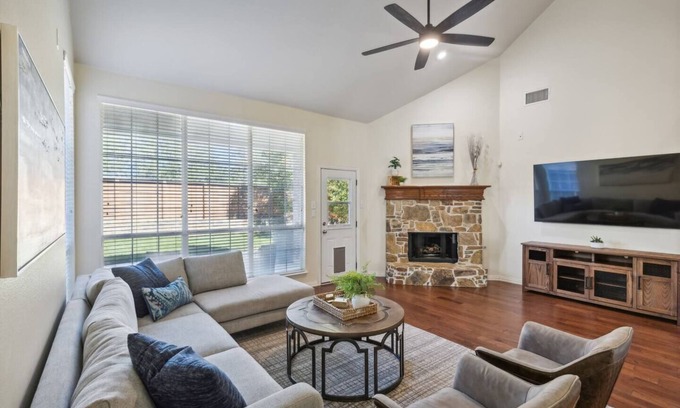 Professionally managed 24/7 by Texas Corporate Homes who specializes in insurance temporary housing. Enjoy the comforts of home in Lantana with this spacious 4-bedroom, 2.5-bathroom retreat on Golf Club Drive. With a king bed in the first-floor master suite and queen beds in each of the second-floor bedrooms, this house caters to all needs. The property also features a workspace, a fenced pet area, and a two-car garage. Please note, there is no pool available.