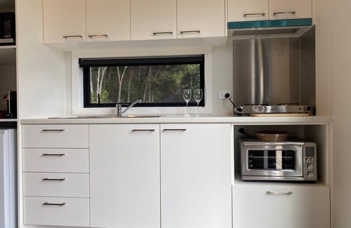 Our almost new tiny home sits in a private and secluded garden, surrounded by native bush.