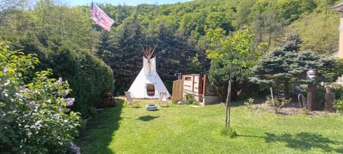 29 miles from Charles Bridge in Zbečno, Tee-pee u Honzíka provides accommodations with access to a hot tub. 29 miles from Prague Castle and 29 miles from St. Vitus Cathedral, the property features a garden and a terrace. The luxury tent also offers free Wifi and free private parking. Towels and bed linen are offered in the luxury tent. The property has an outdoor dining area. Prague Astronomical Clock is 29 miles from the luxury tent, while Old Town Square is 29 miles from the property. Vaclav Havel Prague Airport is 19 miles away.