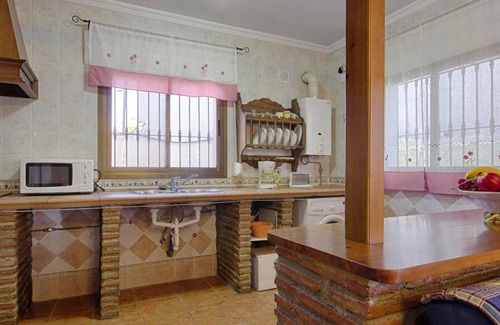 This holiday home for six lies on a hillside in the north-eastern area of Malaga province, where peace and quietness will characterise your holidays and will let you unwind from the hustle and bustle of the daily life. The villa features three bedrooms, one with one double bed and the other with two single beds. The only bathroom at your disposal is provided with both shower and bathtub, to satisfy the needs of all family members. The living area is equipped with two sofas, one dining area, a picturesque fireplace, and it shares space with a fully-equipped open kitchen.