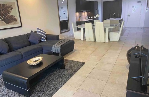 This beautiful 2 bedroom 2 bathroom apartment features a deluxe king size bed in the master bedroom and the second bedroom has an option of a king size bed or 2 single beds. There are 2 large bathrooms both with showers in each one and a double vanity in the master bedroom with a large spa bath tub.