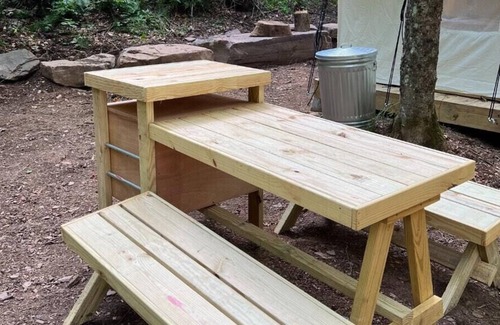 This is a signature Tentrr site. Toilets: Every campsite is equipped with a camp toilet called a Tentrr Loo. This is a simple wooden box with a toilet seat and a bucket inside. To use, line the bucket with a CleanWaste Sani-Bag supplied at the camp prior to use. Afterward, simply tie the bag up and place it in the trash can provided. CleanWaste Sani-Bags use a NASA-developed gelling/deodorizing agent that helps prevent spills and keeps everyone safe and clean.
