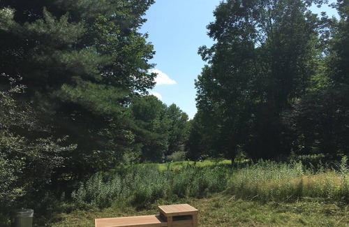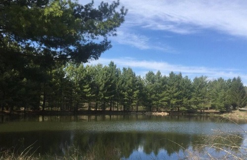 Features open clearing on the edge of mature hardwood forest of Cherry, Oaks, Hickory, Huge White Pines, Hard Maples. Hiking trails through forest on old logging roads. Stunning five mile views overlooking corn and hay fields, where you can observe hawks and eagles soaring below in the valley.