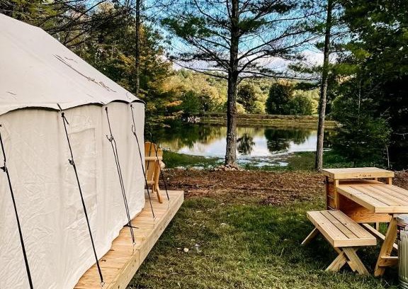 Tentrr Signature Site - Piney Pond Retreat at Tuckaway Tree Farm is located in Petersburg, just 23 miles from Penn State University and 18 miles from Palmer Museum of Art. Beaver Stadium is 19 miles from the luxury tent. The nearest airport is University Park Airport, 22 miles from Tentrr Signature Site - Piney Pond Retreat at Tuckaway Tree Farm.
