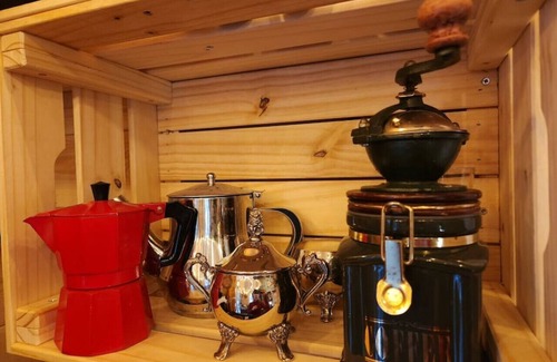 - Fully Equipped Kitchenette: Includes a mini fridge/freezer, mini toaster oven, electric cooktop, Keurig coffee maker, dishes, and a gas BBQ outside. A jug of drinking water is provided in place of an in-cabin sink. Daily dishwashing service is provided complimentary. Breakfast is offered at $25 per person.