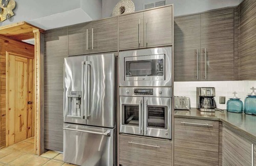 Casa Coop, a playful retreat, accommodates an extra 6 guests with a Queen over Queen bunk bed and a Queen sleeper sofa, making it ideal for kids and the young at heart. This vibrant space is perfect for gaming or fixing a snack with a convenient kitchenette equipped with a microwave and a compact mini fridge, adding to the excitement and enjoyment of the stay.