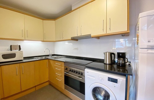 The kitchen, functional and fully equipped (fridge / freezer, hotplates, microwave, washing machine, Nespresso coffee machine, toaster, kettle, etc.).