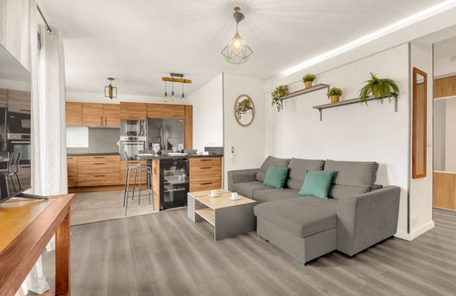 Cocoonr agency offers you this charming 70 m² air-conditioned flat with Wi-Fi for rent in Toulouse, which can accommodate up to 4 people. Located on the 3rd floor, with lift (it arrives on the half landing, leaving 8 steps to go up or down to access the flat). There are also a few steps at the entrance to the building. It comprises an attractive 30 m² living room, a fitted kitchen, two very bright bedrooms with storage space, a shower room (with shower), an office area and separate WCs, as well as two balconies. Cleaning is included in the rental price and 4-star hotel-quality linen is provided (sheets, towels, tea towels). Your bed will be made up on arrival.