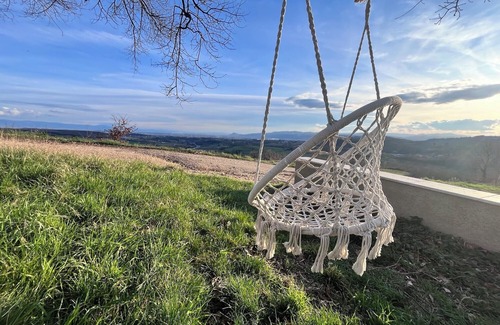 Perched on the hills with a breathtaking view over the picturesque landscapes of the Rhône Valley, our gîte invites you to enjoy a stay of rare elegance, combining modern comfort, authenticity and a breathtaking natural setting. A true haven of peace, this fully renovated former farmhouse of character allows you to escape to a calm and refined environment, while being within easy reach of local attractions and the region's great wines.