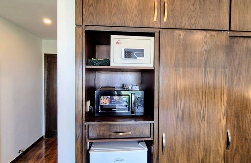 Self-Check In (Through Lockbox). Guests can access Free Private Parking, High Speed Wifi, ChromeCast Enabled LED TV (For Netflix / Youtube) as well as Local Cable TV. Kitchenette with Microwave, Electric Kettle and Fridge (with Freezer). 505 Offers Private attatched Bathroom, with all Toiletries stocked, Hair Dryer, Electric Geyser and Bidet. A safe is also available to keep all you Valuables Safe. Private Balcony, with Seating and Spectacular Day and Night Views (Urban as well as Greenery).