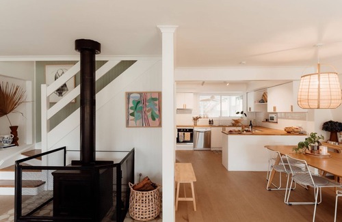 There are three wall mounted reverse cycle air conditioners in the home; one each in the downstairs Living Room, Bedroom 1 and Bedroom 4, ceiling fans in Bedrooms 1 & 2 plus one additional stand-alone fan and two portable heaters which can be used where required. There is also a coonara-style wood heater (enough wood we be supplied to get you started).