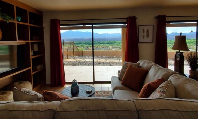 Charming Casita with a Full Kitchen - The Home sits above the village of Tubac and offers 360 degrees of Mountain Views. Casita is Attached to Main Home with its own private entrance. Main Home can be rented on another listing, if you need more room. Casita and Main Home share Pool, Spa and Sauna. Security cameras at Pool, Main Entrance and driveway. The majority of plants are removed in the winter months due to frost. Casita has laundry in unit with a walk-in closet and the bathroom has a shower with basic amenities - Kitchen has basic spices, coffee is provided with coffee maker, toaster, blender, pots and pans-utensils. the Casita overlooks the village of Tubac- home to Artists and Musicians.