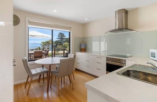 Situated to capture incredible views of the D'Entrecasteaux Channel, and the Hartz mountains, 'The Alonnah' is a unique guest house that sleeps 4 in a comfortable, tranquil, beachy space that provides instant 'relax' vibes on entry! A stunning, elevated deck offers water views also seen from every window! Minutes from the start of a foreshore walking trail, close to swimming beaches, this idyllic home offers a heat pump, laundry, a coffee machine and WiFi! Perfect for short or longer stays.