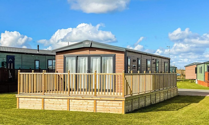New in 2023. The Amy Johnson Lodge is perfect, whether for a cosy couples retreat, or to enjoy with the whole family. This contemporary lodge offers open-plan living, with stylish sofas, a contemporary electric stove fire and large south facing decking. The classic country kitchen includes an oven, a microwave, dishwasher, washing machine and fridge/freezer.
