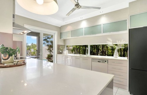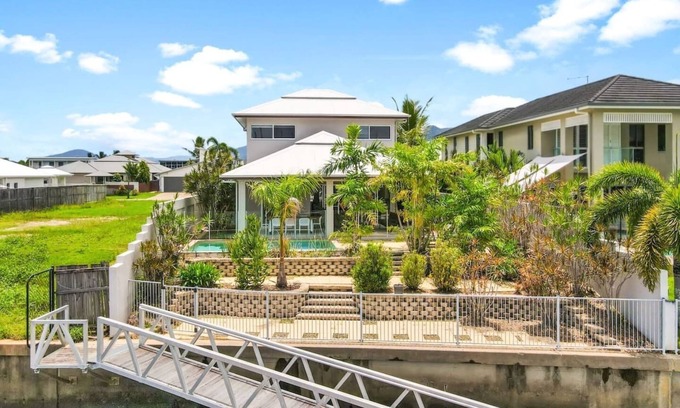 Indulge in luxury at its finest in this grand waterfront holiday home, where every detail is designed for comfort, style, and relaxation. Enter through a private gated entrance into an open-plan sanctuary, where natural light floods through the double-storey atrium, revealing breathtaking marina views.