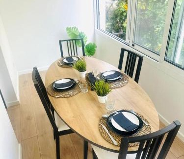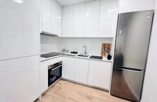 Media & TechnologyFlat-screen TV, TVOutdoorsBalconyKitchenDining table, Kitchen, Refrigerator, Kitchenware, Oven, Dishwasher, Wine glasses, Microwave, StovetopLiving AreaSofa, Sitting area, Dining areaBathroomToilet paper, Towels, Private bathroom, Toilet, Bathtub or showerBedroomLinensBuilding CharacteristicsPrivate apartment in buildingRoom AmenitiesClothes rack, Non-feather pillow, Socket near the bedGeneralTrash cans |