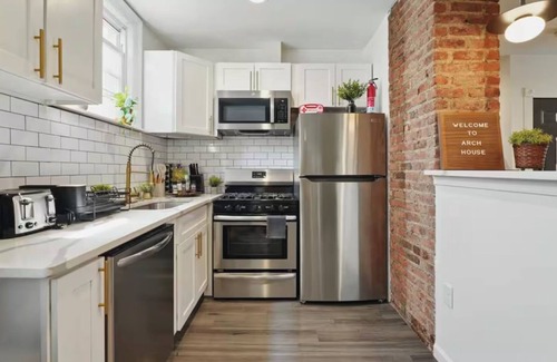 Welcome to ArchHaus—a brand new, professionally designed 2 bed / 1 bath retreat in the heart of Jersey City. Recently renovated from top to bottom and stylishly furnished, it offers a king bed, queen bed, and sofa bed. Just minutes from NYC, it's the perfect stay for couples, creatives, and city explorers.