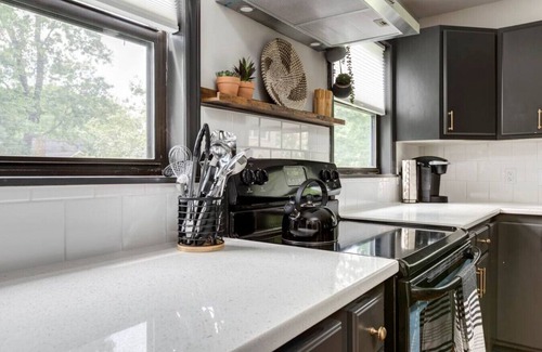The Ardmore Chalet is a fully updated contemporary home that resembles a hidden mountain getaway tucked into the middle of the Ardmore neighborhood. It is uniquely inviting w/ a funky character to match the eclectic vibes of this most adored neighborhood. Enjoy one of the best locations. 5 min drive to Atrium Health Wake Forest Baptist Hospital (or a 15 min walk), 10 min drive to downtown Winston Salem, 15 min drive to Wake Forest University with the whole family at this peaceful place to stay.