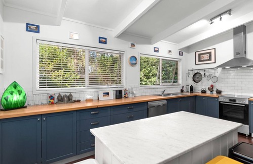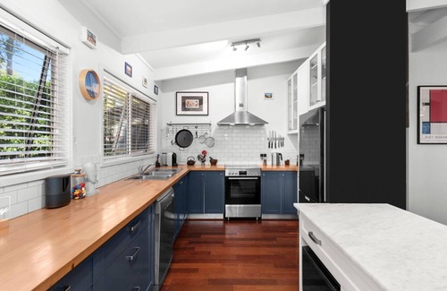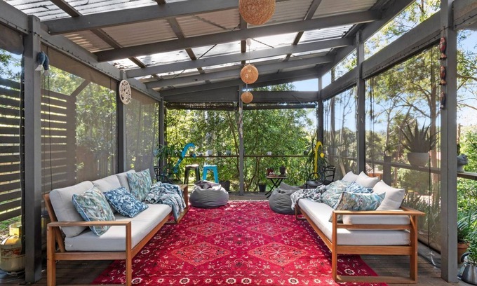 It all begins with the large, sunny open-air deck that looks out to greenery on three sides where you can relax on a daybed, a beanbag or enjoy a tipple or two amongst the fairy lights. Alternatively, you can wander out to the tropical front garden or perhaps unwind with a book under an umbrella in the hidden palm terrace out the back. It doesn’t matter where you go - birdsong will fill the fresh, leafy air.