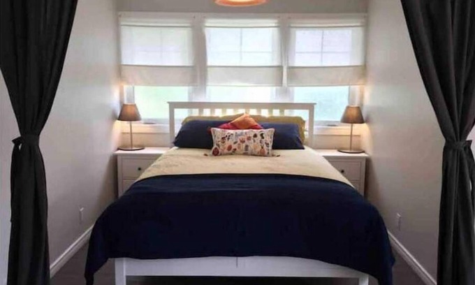 This tranquil loft has a queen bed with curtains for privacy plus a bonus hidden space for kids or adventurous adults to sleep on fold-out mattresses behind the entryway closet. There is also an additional sofa bed in the living room to suit all your sleeping needs!