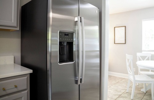 The Audrey features a modern kitchen with stainless steel appliances, including oven/stove, microwave, fridge, toaster, Keurig coffee maker, and all the utensils you will need for preparing meals on days you would rather stay in the comforts of home, rather than eating out at the numerous Ocean Springs hot spots.