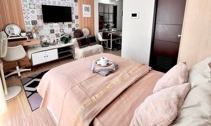 Escape to a tranquil oasis in the heart of Iloilo City with our modern condo retreat. This stylish unit offers a unique blend of comfort, convenience, and relaxation, perfect for travelers seeking a memorable experience. Enjoy the city's vibrant atmosphere while having access to a range of amenities, including a shared outdoor pool, fitness center, and games room. Our condo features a spacious room with shared facilities, complete with a balcony offering breathtaking views of the city and surrounding mountains. Unwind in the sauna, lounge, or TV room, or take a dip in the shared outdoor pool. Stay connected with wireless internet and enjoy the convenience of a fully equipped kitchen with basic condiments, coffee machine, and electric appliances. After a day of exploring, relax in the dining area or seating room, and enjoy a good book from our extensive library. Take advantage of our professional cleaning services, contactless check-in, and enhanced safety features, including outdoor lighting, hand sanitizer, and a fire extinguisher. Located in a secure building with 24/7 security, our condo is perfect for families, groups, and solo travelers alike.