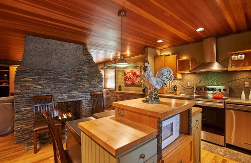 If you want a relaxing stay in beautiful Blowing Rock, with easy access to all the shopping and restaurants without the hassles of parking, you will love Bark Bungalow. Tucked away on a quiet one-way side street, half a block from Main Street, Bark Bungalow offers an abundance of rustic charm and a very uniquely crafted interior--wood floors, a gourmet kitchen that would be at home in a house twice this size, a gorgeous dry stack stone gas logs fireplace, a master bedroom with king bed and a second bedroom with a queen, plus two adjoining full baths. Note: Wood is not provided for the fireplace.