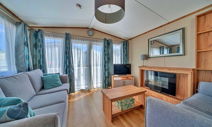The Barkley is a comfortable and stylish mobile home on the beautiful Wilksworth Trailer Park. The park is one of several owned by award-winning Shorefield Holidays, known for its tranquil setting amidst astonishing countryside. The park boasts a number of family-friendly facilities, all of which guests have access to, including outdoor heated swimming pool (open during the summer months), BMX track, soccer field, playground, table tennis, campground store and laundromat.An enclosed sun deck with outside table and chairs surrounds the trailer, so perfect for smaller children or if you want to bring your pooch with you for long countryside walks. The large bright and airy open plan living room/dining and kitchen is a fantastic living space for your vacation. Whether you are coming together to play a board game around the table, sink into the sofas to watch the Toshiba 32 inch TV, or dine in after cooking a meal in the well-equipped kitchen, including large fridge/freezer, oven, dishwasher, kettle, microwave, toaster and coffee press - this large spacious room is designed with comfort and quality in mind.The main bedroom contains a king-size bed and attached bathroom. The second bedroom holds twin beds and there is a further family bathroom with shower, sink and toilet. All the amenities such as hairdryer, iron, ironing board, washer, and clothes drying rack and clothespins, gives this trailer a home from home feel.For convenience there is a graveled parking space right next to the camper for one car and any other vehicles can be left in the main parking lot by reception. There is also an EV charger by reception. There is no router in the camper, however guests can enjoy the park's WiFi at no extra cost.The Barkley is perfectly situated, with a short drive to Wimborne Minster. Explore this ancient market town, which is packed with character and stop by one of the many cafes, restaurants and independent shops. Also, a short drive away is Poole Harbor, where guests can book a boat trip to Brownsea Island, a captivating destination managed by the National Trust or venture into The New Forest to spot free-roaming ponies and walk in the woodlands. There's plenty to explore and discover for all ages in the surrounding area and further afield, and two dogs are welcome at this property.Due to site regulations, marked commercial vans are not permitted on the premises. The owner's site license only allows for leisure guests, so the property cannot accommodate work-related stays or business vehicles.Please contact Finest Retreats for more information.