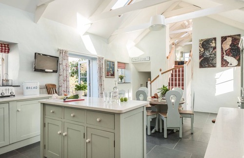Amenities: Ample off road private parking. Secure storage for bikes and boards. Underfloor heating downstairs, school column radiators upstairs, multi-fuel stove. Induction hob, electric oven, integral fridge freezer, washing machine, Kitchen Aid coffee maker. TV’s DVD, Xbox, books, games, jigsaws etc. Sumptuous bed linen and towels inc. in rent. Fuel, power and starter pack inc. in rent. South facing lawned garden with patio, furniture and BBQ