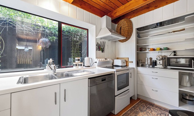 With three bedrooms and two bathrooms, The Beach House sleeps up to seven guests, offering the perfect space for families or friends to unwind in this vibrant beach town.