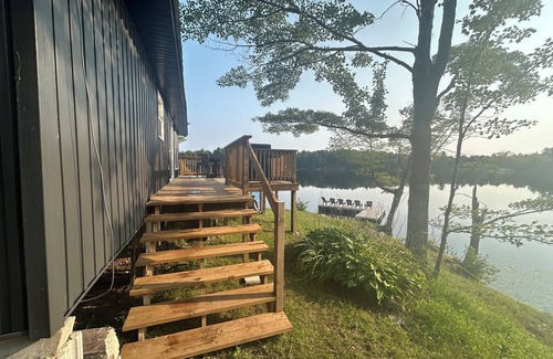 Welcome to our paradise sitting at the Waters edge in Parham, On on gorgeous private elbow Lake This two bedroom one and a half bath newly renovated cottage one king one queen air conditioning, flatscreen TV with Starlink Internet new well with clean drinking water easy access just two minutes off Highway 38 complete privacy at the end of the lane no Thruway traffic flat level lot excellent swimming deep water off the brand new dock with swim ladder large deck with barbeque Fire pit with Adirondack chairs. The fishing is incredible right off the dock private lake boat launch private walking trail trails close to KP trail snowmobiling and four wheeling trails grocery LCBO 15 minute Drive charming Sharbot Lake and Westport 20 minutes. Drive 30 minutes to Kingston 15 minutes to Verona New rental so most dates available for the balance of 2024 and 2025 season Saturday to Saturday rental 2275 per week +150 cleaning fee fresh clean linen additional 250 per week or bring your own