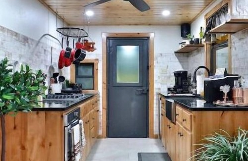 I challenge you to find something more unique. The Belle Plain Caboose is fully stocked for your weekend getaway. All necessary breakfast supplies, champagne, juices and firewood will all be furnished. Along with a fully stocked kitchen, you can whip a nice romantic dinner on the gas cook top, or oven, and store a nice bottle of wine in the fridge. You can also cook up a little something in the outdoor kitchen, located on the back screened in porch. The caboose is fully heated and air conditioned. Towels, linens, soap and shampoo furnished.