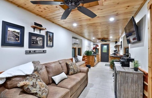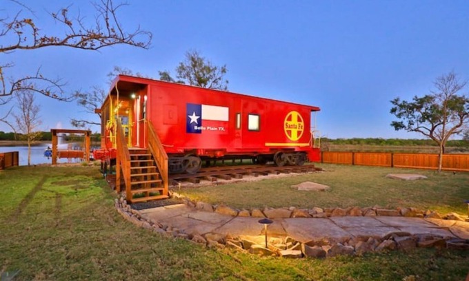 The Belle Plain Caboose is a one of a kind romantic retreat. Located in the middle of an 800 acre working ranch. The caboose provides endless outdoor adventure with a charming interior. Fish from the back dock on the 17 acre biologist maintained stock tank, relax on the screened in covered porch, or enjoy a nice cozy chair by the firepit. Feed your mind and soul under the twinkling stars while listening to the lake fountain. No expense spared in making this truly amazing getaway.